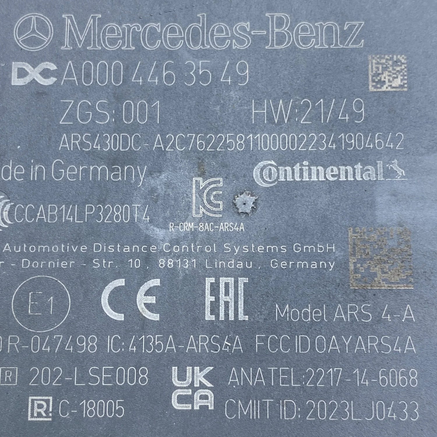 A0004463549 Genuine Mercedes-Benz Distance Radar Control Unit